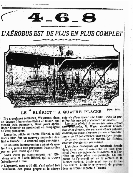 soit une charge d'un poids total de 473,500 kg (record précédemment détenu par Roger Sommer avec 5 passagers) puis porté au mois de mars à 8, puis 11, puis 13 passagers à bord dont l'aviatrice Jane Herveux, fondatrice de la première école d'aviation pour femmes et le pilote suisse Paul Wyss. (Wikipedia)